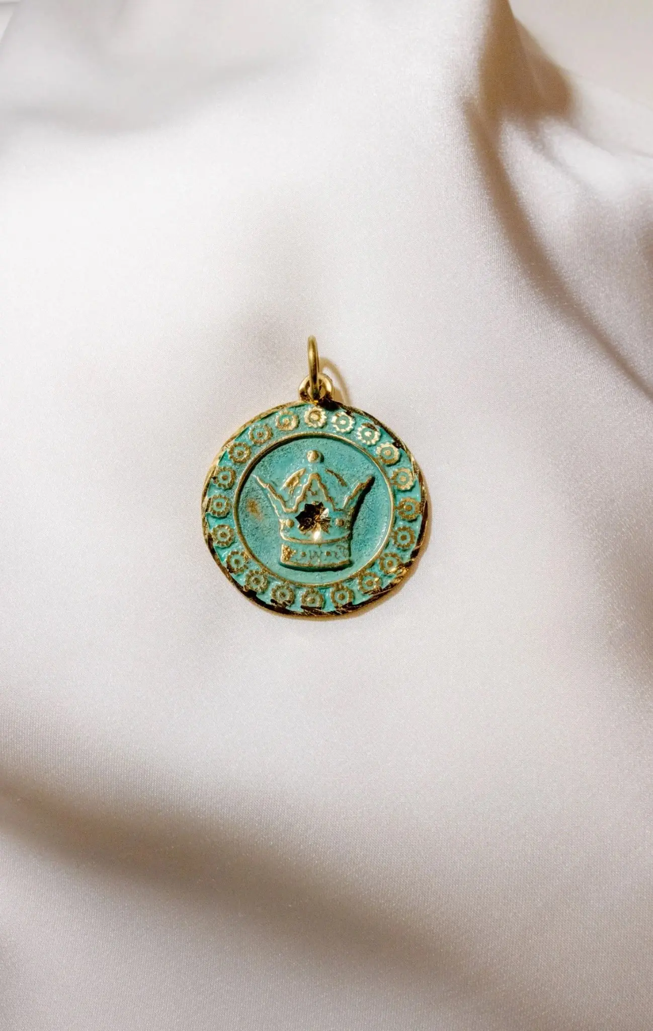 This medallion-style pendant features a raised royal crown motif encircled by ornamental detailing, evoking themes of authority, dignity, and legacy. The crown symbol has long held significance in Persian visual culture as a representation of sovereignty, order, and divine responsibility.