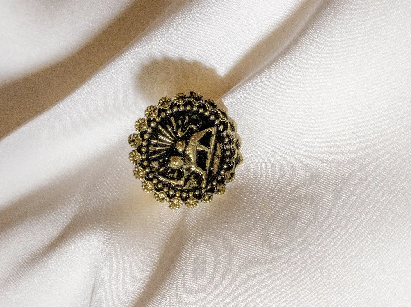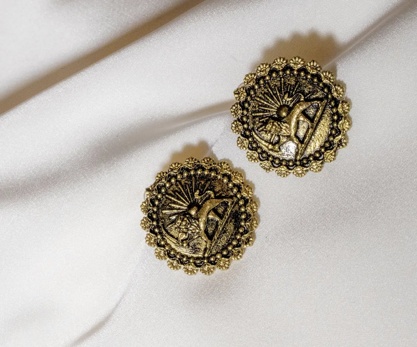 Each medallion is framed with an ornate circular border inspired by historical coinage and royal seals, giving the set a timeless, ceremonial presence. Finished in an antique gold tone, the textured relief enhances depth and dimension while preserving a sense of historical continuity. This design functions as a cultural homage rather than a political statement, emphasizing heritage, symbolism, and craftsmanship.