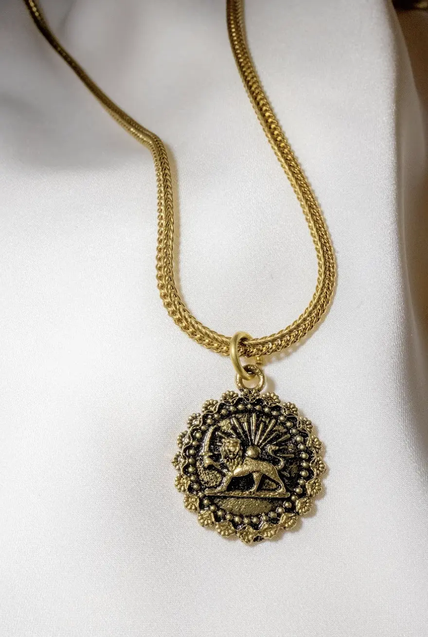 This handcrafted jewelry set features the Shir-o-Khorshid (Lion and Sun) motif rendered in detailed medallion form, one of the most enduring symbols in Persian cultural history. The lion represents strength, courage, guardianship, and sovereignty, while the rising sun signifies light, wisdom, renewal, and divine order. Together, they express balance between power and illumination—a recurring theme in Persian art and identity.