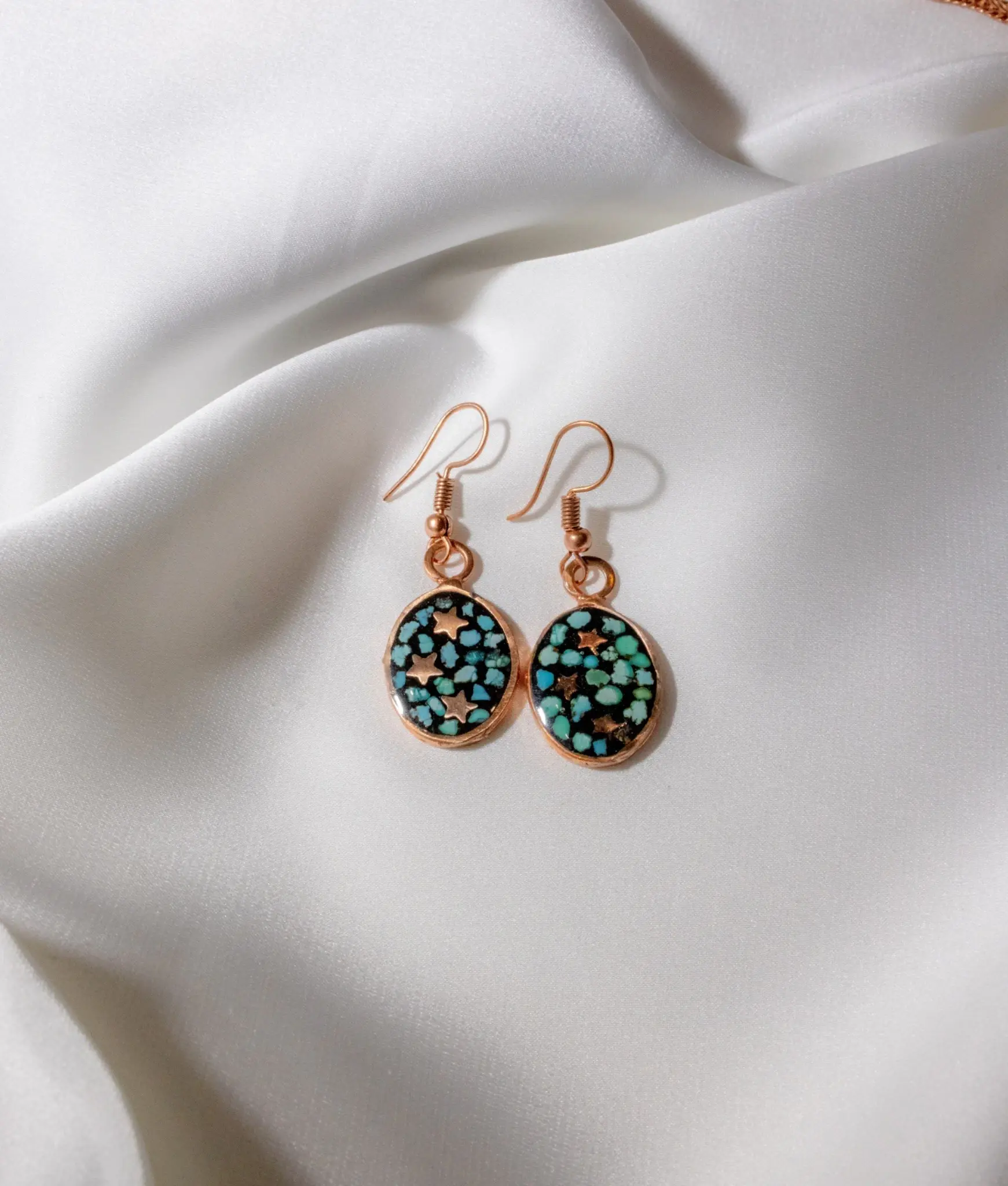 The Turquoise Star Set is inspired by celestial symbolism deeply rooted in Persian and Zoroastrian traditions, where stars represent divine order, guidance, and the presence of light within darkness. In Zoroastrian philosophy, light and cosmic harmony are sacred, symbolizing truth, wisdom, and protection.